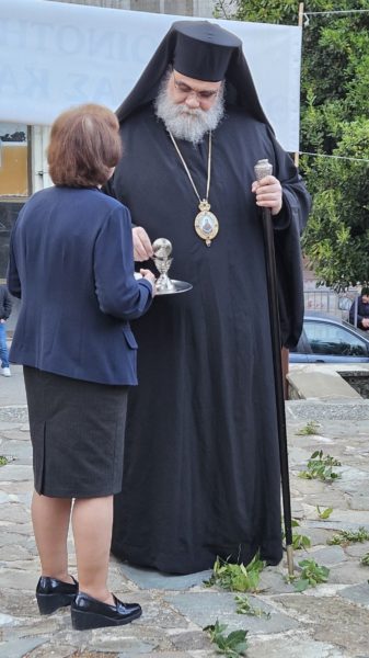 Στο ιερό αναλόγιο, εκτός από τους ψάλτες του Ιερού Ναού, συμμετείχε και ο Πρωτοπρεσβύτερος Ανδρέας Τουλούμης.