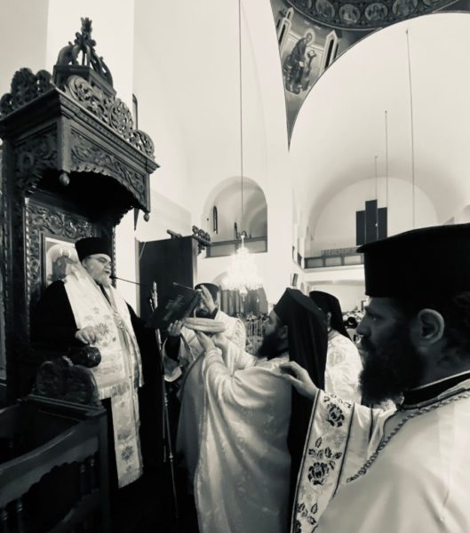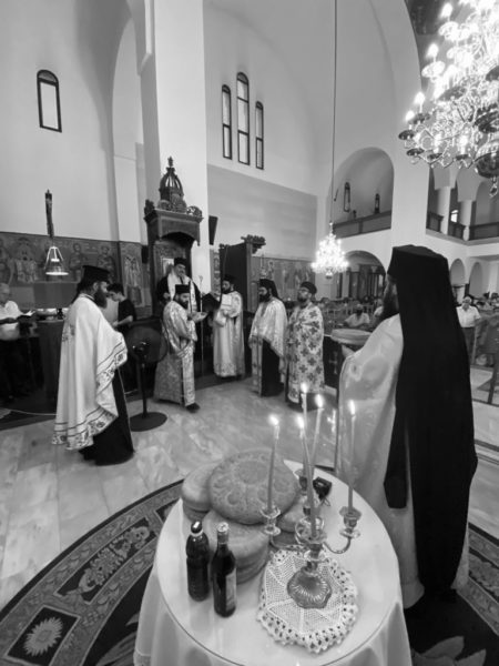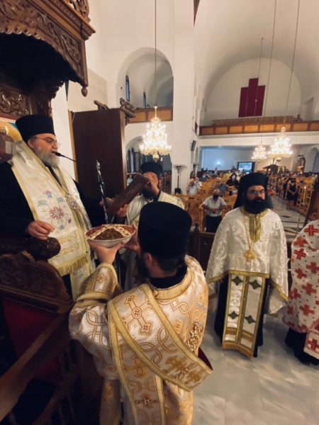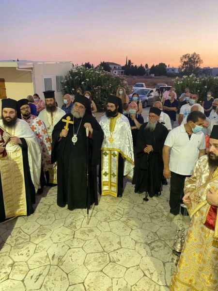 Τον Πανιερώτατο πλαισίωναν οι Πανοσιολογιώτατοι Αρχιμανδρίτες Θεοτόκης Φαίδωνος και Δημητριανός Πέτσας, ο Οικονόμος Ανδρέας Ανδρέου, προϊσταμενος του Ιερού Ναού, ο Πρεσβύτερος Κωνσταντίνος Κωνσταντίνου, ο Αρχιδιάκονος της Μητροπόλεως Ραφαήλ Μισιαούλης και ο Ιεροδιάκονος Αρσένιος Αθανασίου.