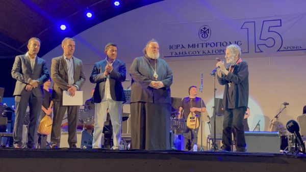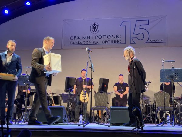 Ο Πανιερώτατος Μητροπολίτης Ταμασού κ. Ησαΐας απένειμε στον κ. Σταύρο Ξαρχάκο, το σταυρό του Αγίου Ηρακλειδίου, πρώτου Επισκόπου των Ταμασέων, προστάτου και πολιούχου της Μητροπόλεως, για την πολυετή του προσφορά στον πολιτισμό και την μουσική.