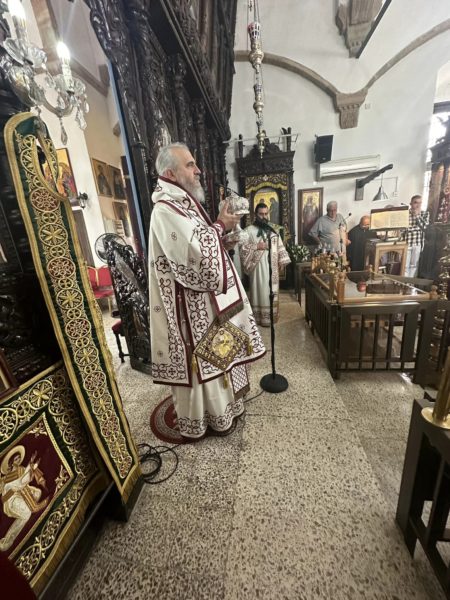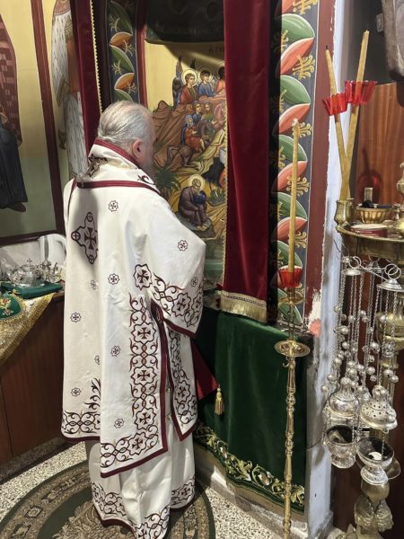 Ανήμερα της πανηγύρεως, Τετάρτη 9 Οκτωβρίου 2024, χοροστάτησε στον Όρθρο και προεξήρχε στη Θεία Λειτουργία ο Θεοφιλέστατος Επίσκοπος Νεαπόλεως κ. Πορφύριος.