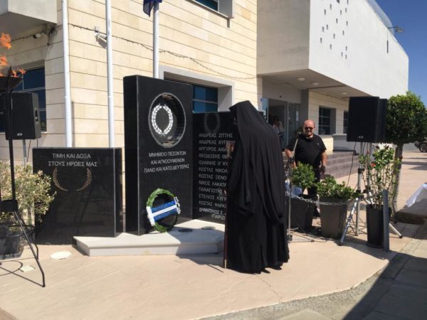 Μετά τη Θεία Λειτουργία, ο Πανιερώτατος μετέβη στο μνημείο των πεσόντων, το οποίο βρίσκεται μπροστά από τα Κοινοτικά Συμβούλια Πάνω και Κάτω Δευτεράς, όπου έγινε κατάθεση στεφάνων.