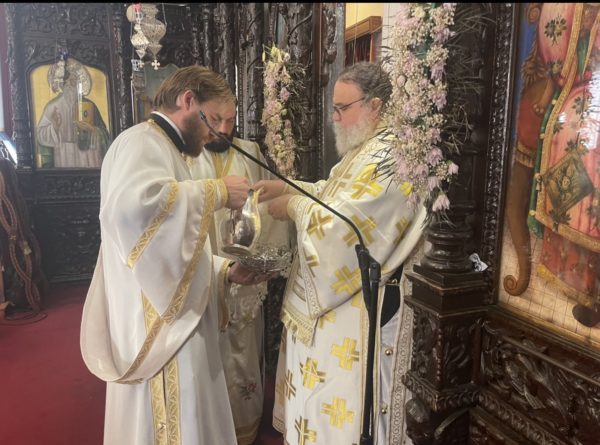 Τον Πανιερώτατο πλαισίωναν ο Πανοσιολογιώτατος Αρχιμανδρίτης Χριστόδουλος Κοτσίφης, ο Πρωτοπρεσβύτερος Θεόδωρος Στυλιανού, ο Αρχιδιάκονος Ραφαήλ Μισιαούλης και ο Ιεροδιάκονος Ανδρέας Αλιόσιν.