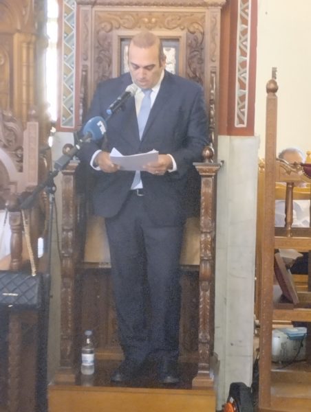 Τον επιμνημόσυνο λόγο εκφώνησε ο έντιμος Υπουργός Επικοινωνιών, Μεταφορών και Έργων κ. Γιάννης Καρούσος. Στο τέλος εψάλη ο Εθνικός Ύμνος.
