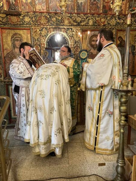 Στην Αρχιερατική Θεία Λειτουργία προεξήρχε ο Πανιερώτατος Μητροπολίτης Ταμασού και Ορεινής κ. Ησαΐας, πλαισιούμενος από τον εφημέριο του Ναού, Οικονόμο Πολύδωρο Πολυδώρου, και τον Αρχιδιάκονο Ραφαήλ Μισιαούλη.