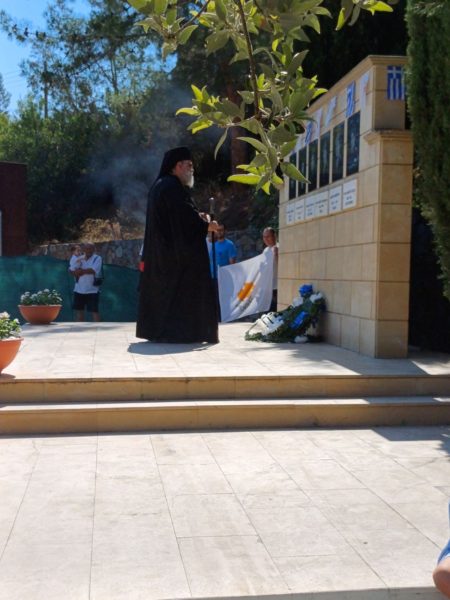 Στο τέλος της Θείας Λειτουργίας ο Πανιερώτατος τέλεσε το εθνικό Μνημόσυνο των πεσόντων της κοινότητος Ανδρέα Κ. Βιολάρη, Μιχαλάκη Τυρίμου, Δημητρίου Θωμά Ιωάννου, Νικοδήμου Χαραλάμπους, και των πεσόντων στο πραξικόπημα της 15ης Ιουλίου 1974.