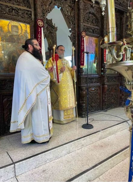 Τον Πανιερώτατο πλαισίωναν ο Πανοσιολογιώτατος Αρχιμανδρίτης Δημητριανός Πέτσας, ο Πρεσβύτερος Παναγιώτης Σταύρου και ο Αρχιδιάκονος Ραφαήλ Μισιαούλης.