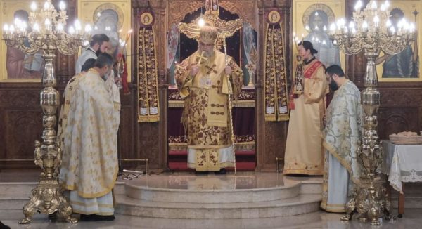 Τον Πανιερώτατο πλαισίωναν ο Πρωτοπρεσβύτερος Ανδρέας Τουλούμης, προϊστάμενος του Ιερού Ναού, οι Οικονόμοι Ανδρέας Πλώτας (εξ Ελλάδος) και Χρίστος Ιακώβου, ο Αρχιδιάκονος Ραφαήλ Μισιαούλης και ο Ιεροδιάκονος Άνθιμος.