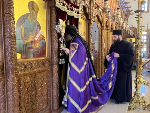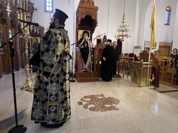 Τον Πανιερώτατο πλαισίωναν ο Πρωτοπρεσβύτερος Δήμος Δημοσθένους, ο Αρχιδιάκονος Ραφαήλ Μισιαούλης και ο Ιεροδιάκονος Αρσένιος Αθανασίου.