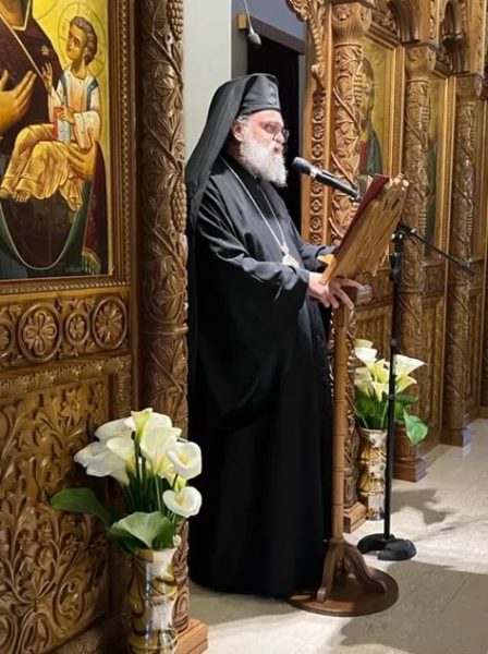 Στο τέλος του εσπερινού, ο Πανιερώτατος ομίλησε στο εκκλησίασμα με θέμα «Ο Άγιος Ιωάννης της Κλίμακος – αποτύπωση του συνόλου της πνευματικής ζωής».