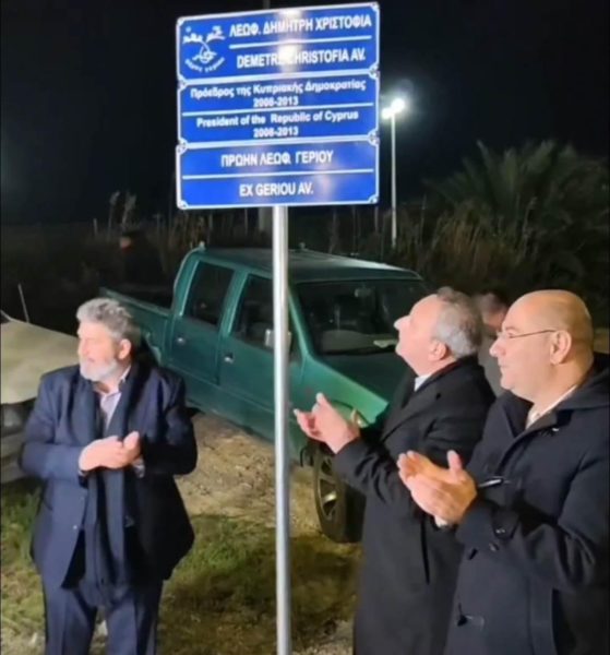Η ονοματοδότηση έγινε όπως αποφασίστηκε ως ένδειξη εκτίμησης και σεβασμού σε ένα άνθρωπο που η ζωή του ήταν δοσμένη στον αγώνα της Κύπρου για ελευθερία, για κοινωνική δικαιοσύνη , για τον απλό άνθρωπο. Στην εκδήλωση ήταν παρούσα η σύζυγος του Έλση κι η οικογένεια του αείμνηστου Χριστόφια, βουλευτές, Δήμαρχοι, δημοτικοί σύμβουλοι και πλήθος κόσμου, καταλήγει η ανακοίνωση.