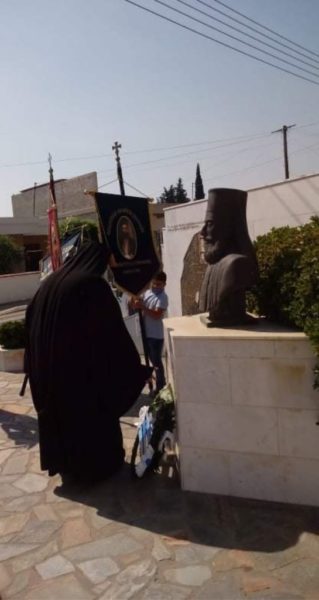 Μετά το τέλος της Θείας Λειτουργίας πραγματοποιήθηκε κατάθεση στεφάνων στο μνημείο του Εθνομάρτυρα Κυπριανού από τον Μητροπολίτη Ταμασού, την Πολιτική Ηγεσία, την βουλευτή του Δημοκρατικού Συναγερμού Σάβια Ορφανίδου, εκπροσώπους Πολιτικών Κομμάτων, τον Πρόεδρο της Ένωσης Κοινοτήτων Κύπρου, εκ μέρους του Αρχηγού Αστυνομίας Κύπρου, εκ μέρους του Αρχηγού της Εθνικής Φρουράς, εκ μέρους του Διοικητής της ΕΛΔΥΚ, τον Πολιτιστικό Σύνδεσμο Ταμασού, Κοινοτάρχες, Εκκλησιαστικές Επιτροπές, Χριστιανικούς Συνδέσμους και Σωματεία. Η τελετή έληξε με τον Εθνικό Ύμνο.