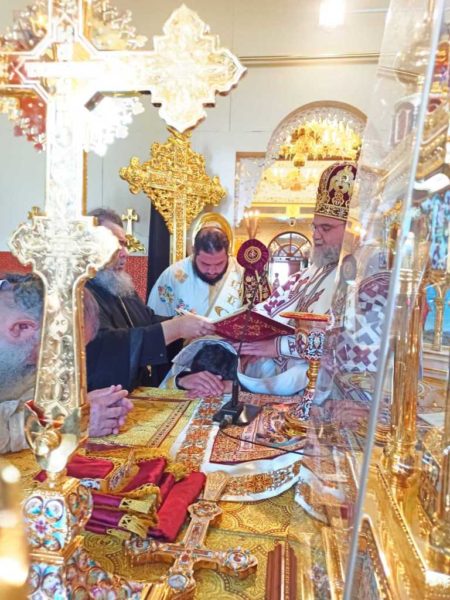 Κατά τη διάρκεια της Θείας Λειτουργίας, ο Πανιερώτατος χειροτόνησε σε διάκονο τον φοιτητή της Ιερατικής Σχολής “Απόστολος Βαρνάβας”, Σπυρίδωνα Καρατζιά εξ Ελλάδος.
