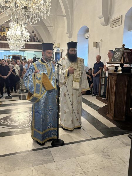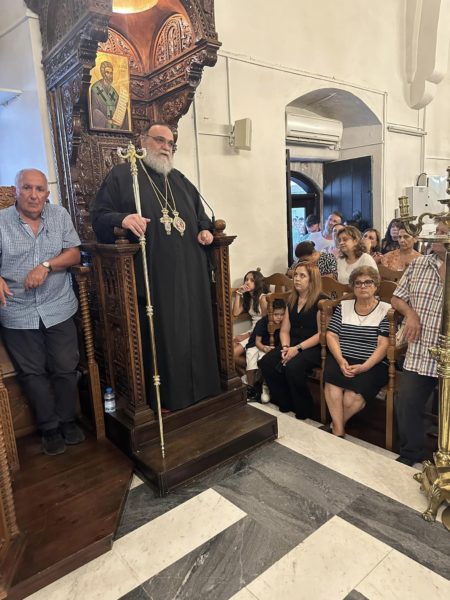 Προ του πέρατος της ακολουθίας του Εσπερινού, ο Οικονόμος Ανδρέας Παπαχαραλάμπους, Εφημέριος του Ναού, ευχαρίστησε τον Πανιερώτατο Μητροπολίτη κ. Ησαΐα, ο οποίος λάμπρυνε με την παρουσία του την έναρξη των λατρευτικών ακολουθιών της πανηγύρεως προς τιμή της Κυρίας Θεοτόκου.