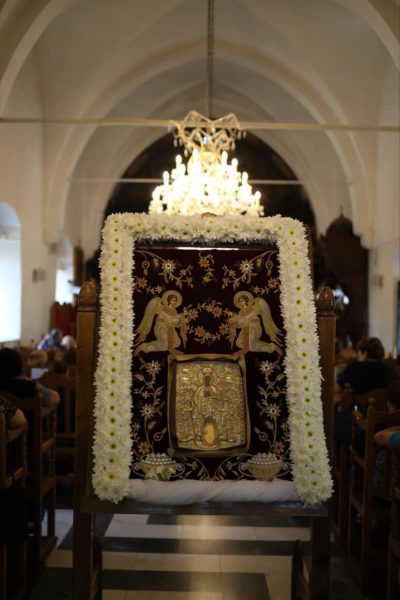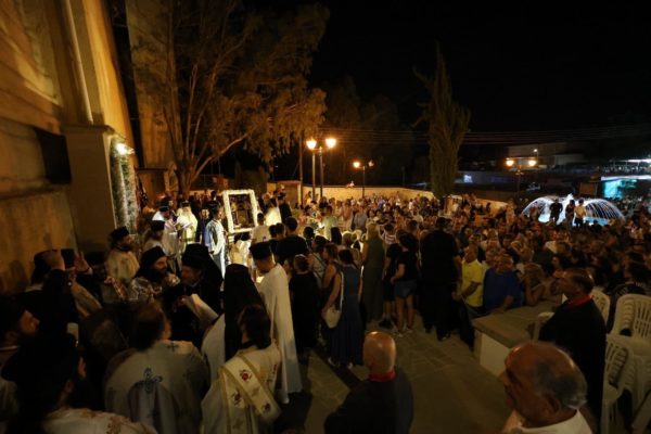 Του Αρχιερατικού Εσπερινού χοροστάτησε ο Πανιερώτατος Μητροπολίτης Ταμασού και Ορεινής κ. Ησαΐας, ο οποίος προεξήρχε και της Ιεράς λιτανεύσεως της Εικόνος.