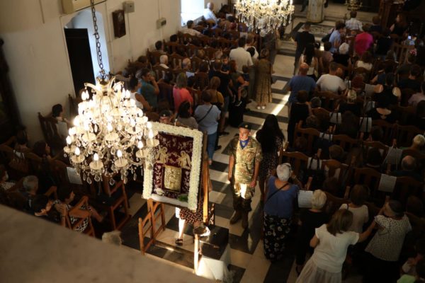 Εκατοντάδες πιστοί, μικροί και μεγάλοι, γέμισαν ασφυκτικά τον Ιερό Ναό του Αγίου Νικολάου και περίμεναν καρτερικά στους δρόμους κατά τους οποίους διερχόταν η λιτανεία της Ιερής και θαυματουργής Εικόνας.