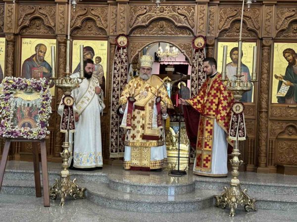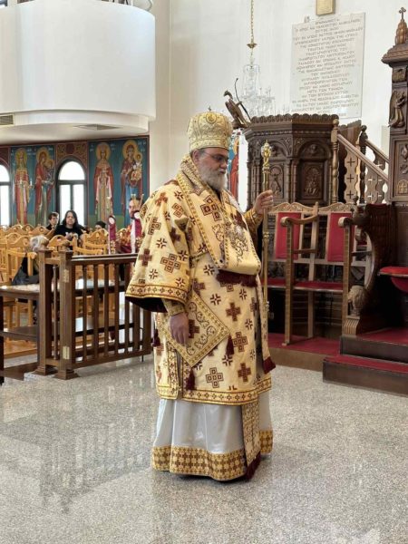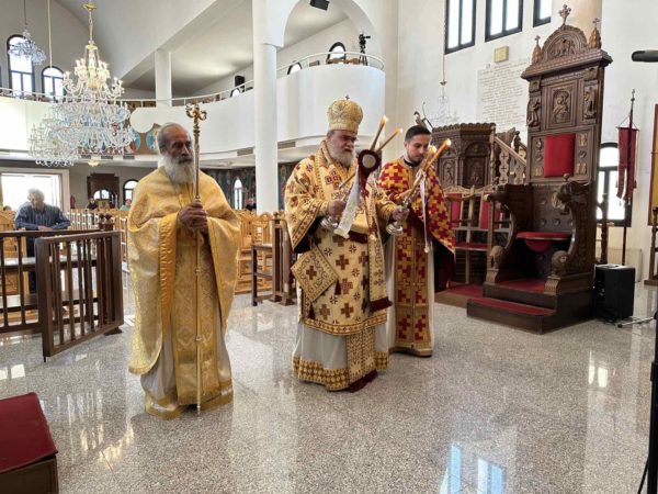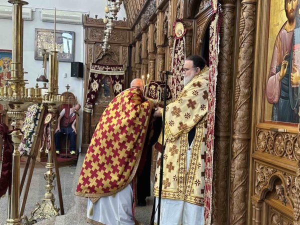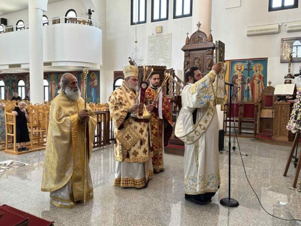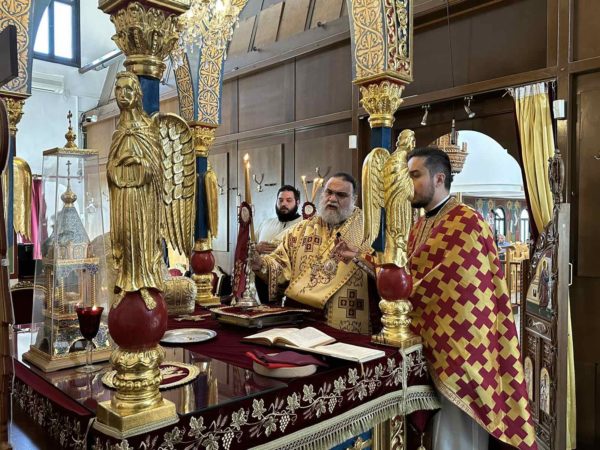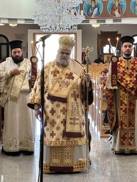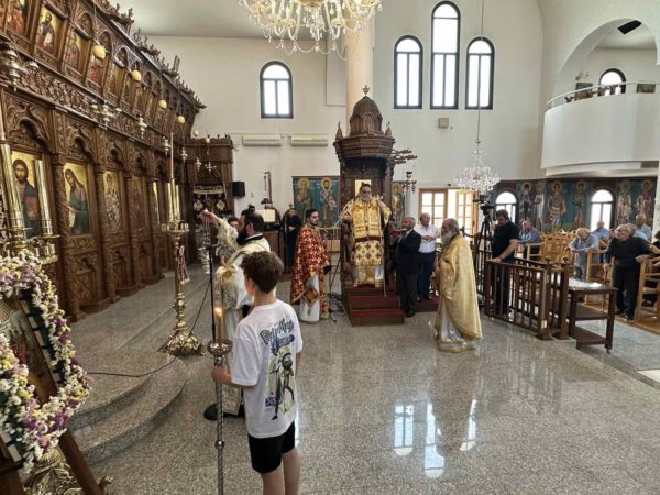 Στη Θεία Λειτουργία προεξήρχε ο Πανιερώτατος Μητροπολίτης Ταμασού και Ορεινής κ. Ησαΐας, πλαισιούμενος από τους ιερείς του Ιερού Ναού, τον Πρωτοπρεσβύτερο Κυπριανό Παπαδόπουλο και τον Οικονόμο Θεόφιλο Αλχούρι, και τον Αρχιδιάκονο Ραφαήλ Μισιαούλη.
