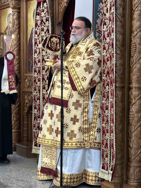 Τον θείο λόγο κήρυξε, κατόπιν αδείας του Πανιερωτάτου, ο Αρχιδιάκονος της Ιεράς Μητροπόλεως Ταμασού και Ορεινής, π. Ραφαήλ Μισιαούλης, ο οποίος αναφέρθηκε στην ημέρα της Πεντηκοστής, σύμφωνα με το αποστολικο ανάγνωσμα της εορτής.