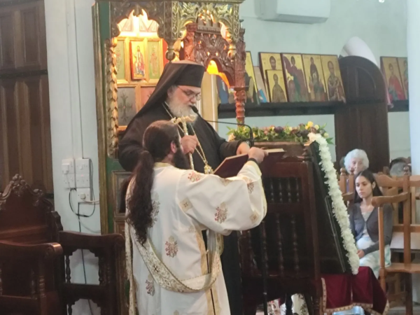 Στον εσπερινό χοροστάτησε ο Πανιερώτατος Μητροπολίτης Ταμασού και Ορεινής κ. Ησαΐας, πλασιούμενος από τους Πρωτοπρεσβύτερο Κωνσταντίνο Χατζηνικολάου, τον Οικονόμο Νεόφυτο Πάρπα, τους π. Ανδρέα Σωτηρίου και π. Νικόλαο Τζαβέλα και τους διακόνους Ραφαήλ Παπασωτηρίου και Βαρθολομαίο.