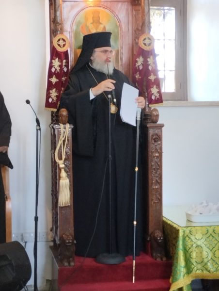 Μετά το Ευαγγελικό ανάγνωσμα, ο Μητροπολίτης Ταμασού κήρυξε το θείο λόγο. Πρωτίστως ευχαρίστησε το Θεοφιλέστατο για την αποδοχή της πρόσκλησης να προστεί της σημερινής Θείας Λειτουργίας. Τον παρακάλεσε να μεταφέρει τις ευχαριστίες του προς τον Μακαριώτατο Πάπα και Πατριάρχη Αλεξάνδρειας κ. Θεόδωρο και τον διαβεβαίωσε ότι θα συνεχίσει να στηρίζει το ιεραποστολικό έργο του Πατριαρχείου Αλεξανδρείας. Στη συνέχεια, ο Πανιερώτατος προσέφερε στον Θεοφιλέστατο ψηφιδωτό εικόνισμα της Υπεραγίας Θεοτόκου.