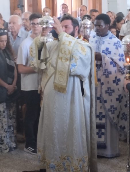 Μετά το πέρας της Θείας Λειτουργίας, τελέστηκε η λιτάνευση της ιεράς εικόνος και των ιερών λειψάνων των Αγίων, πέριξ του Ιερού Ναού.