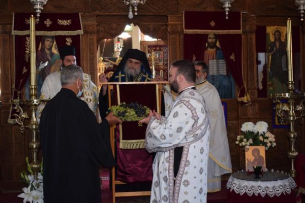 Προ της απολύσεως και συμφώνως με το εκκλησιαστικό έθος, ο Πανιερώτατος ευλόγησε τους καρπούς της αμπέλου, οι οποίοι και διαμοιράστηκαν στο εκκλησίασμα.