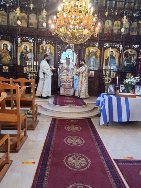 Μετά το πέρας της Θείας Λειτουργίας έγινε κατάθεση στεφάνων στο μνημείο των ηρώων.