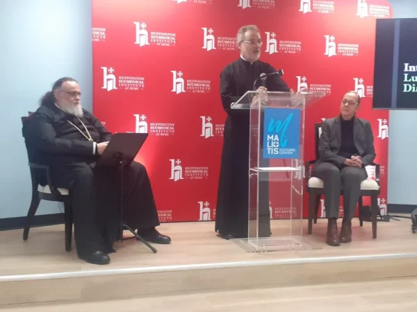 Υπενθυμίζουμε ότι η θεολογική Σχολή Τιμίου Σταυρού Βοστώνης αποτελεί το ανώτατο θεολογικό καθίδρυμα της Ιεράς Αρχιεπισκοπής Αμερικής στο οποίο είχε σπουδάσει ο αείμνηστος Αρχιεπίσκοπος Κύπρου Μακάριος ο Γ´. Εκεί μάλιστα συνέγραψε και την γνωστή διατριβή του η οποία αποτελεί σταθμό για την Κυπριακή Αγιολογία «ΚΥΠΡΟΣ – Η ΝΗΣΟΣ ΤΩΝ ΑΓΙΩΝ». Το προηγούμενο βράδυ, Τρίτη 12 Νοεμβρίου, ο Μητροπολίτης Ταμασού Ησαΐας έδωσε μεγάλη διάλεξη σε καθηγητές και φοιτητές της σχολής με θέμα την ιστορία και το θεολογικό περιεχόμενο του διαλόγου Λουθηρανών -Ορθόδοξων . Μετά την διάλεξη ακολούθησαν ερωτήσεις από το ακροατήριο και διεξήχθη ένας ιδιαίτερα καρποφόρος διάλογος μεταξύ του Πανιερωτάτου και των παρευρισκόμενων.