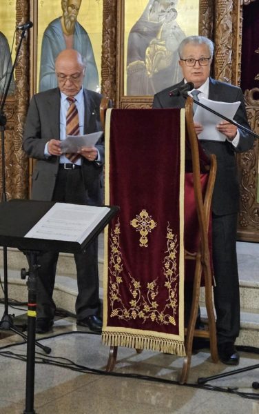 Προηγήθηκαν οι χαιρετισμοί του Πανιερωτάτου Μητροπολίτου Ταμασού και Ορεινής Ησαΐου, τον οποίο εξεπροσώπησε ο π. Ραφαήλ Μισιαούλης, μεταφέροντας τις πατρικές ευχές του Μητροπολίτου Ταμασού, της Υφυπουργού Πολιτισμού της Κύπρου, Δρ. Βασιλικής Κασσιανίδου, και του Δημάρχου Τσερίου, κ. Σταύρου Μιχαήλ.