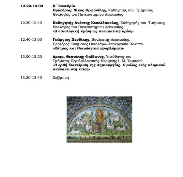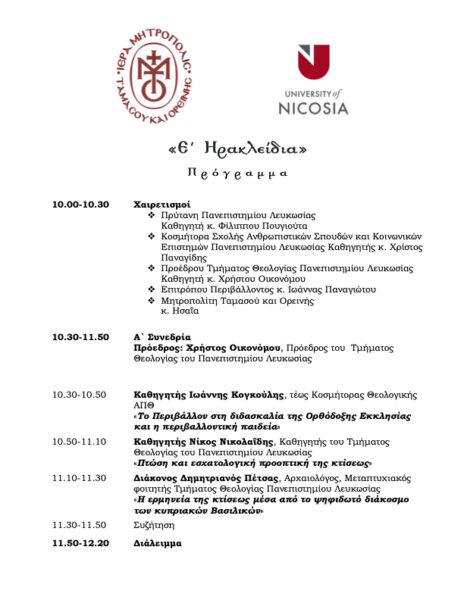 Η Ιερά Μητρόπολις Ταμασού και Ορεινής και το Τμήμα Θεολογίας του Πανεπιστημίου Λευκωσίας, μέσα στο πλαίσιο των Εκδηλώσεων για τα «Ε΄ Ηρακλείδια», διοργανώνουν Επιστημονικό Συνέδριο με θέμα:  «Εκκλησία και Περιβάλλον».