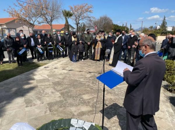 Μετά τη θεία λειτουργία, ο Πανιερώτατος μετέβη στον ανδριάντα του ήρωα Ευαγόρα Παλληκαρίδη, που βρίσκεται στην κοινότητα, όπου τέλεσε τρισάγιο και ακολούθησε κατάθεση στεφάνων.