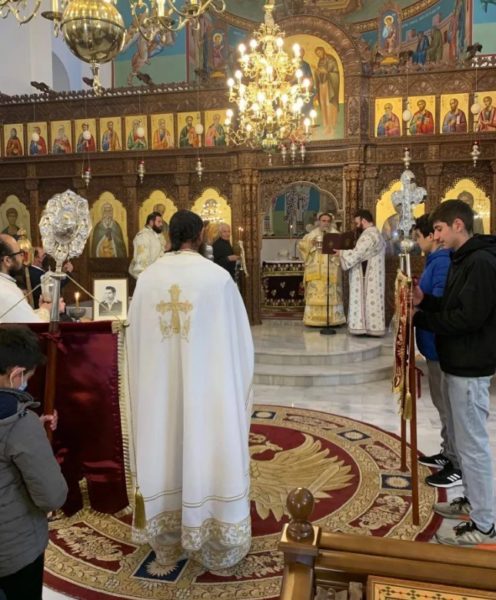 Τον Πανιερώτατο πλαισίωναν ο Οικονόμος Ανδρέας Ανδρέου, Προϊστάμενος του Ιερού Ναού, ο Πρεσβύτερος Κωνσταντίνος Κωνσταντίνου και ο Αρχιδιάκονος Ραφαήλ Μισιαούλης.