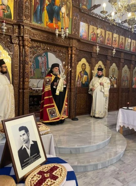Μετά τη θεία λειτουργία, ο Πανιερώτατος μετέβη στον ανδριάντα του ήρωα Ευαγόρα Παλληκαρίδη, που βρίσκεται στην κοινότητα, όπου τέλεσε τρισάγιο και ακολούθησε κατάθεση στεφάνων.