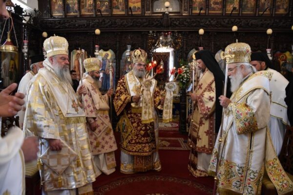 Της πανηγυρικής συνάξεως και της Θείας Λειτουργίας προεξήρχε ο άγων τα ονομαστήριά του Μητροπολίτης Ταμασού και Ορεινής, συλλειτουργούντων των Σεβασμιωτάτων Μητροπολιτών Βόστρων και Εξάρχου του Παναγίου Τάφου εν Κύπρω κ. Τιμοθέου και Λεμεσού κ. Αθανασίου και των Θεοφιλεστάτων Επισκόπων Νιτρίας και Εξάρχου του Πατριαρχείου Αλεξανδρείας κ. Νικοδήμου και Αμαθούντος κ. Νικολάου.