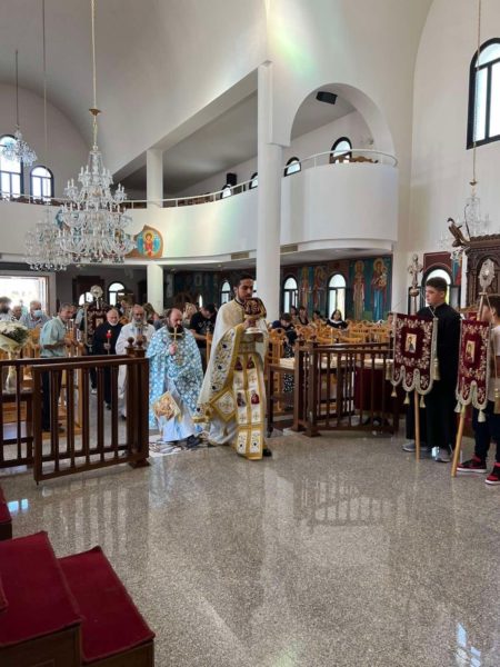 Της Θείας Λειτουργίας προέστη ο Πανοσιολογιώτατος Αρχιμανδρίτης του Οικουμενικού Θρόνου, πατήρ Διονύσιος Κοπτίδης, πλαισιούμενος από τον Πρωτοπρεσβύτερο Κυπριανό Παπαδόπουλο, τον Οικονόμο Θεόφιλο Αλχούρι, τον Αρχιδιάκονος Ραφαήλ Μισιαούλη και τον Ιεροδιάκονο Αρσένιο Αθανασίου.