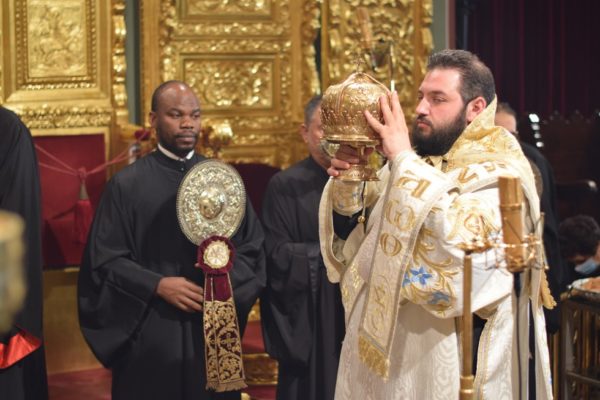 Τη Θεία Λειτουργία τέλεσε ο Πανοσιολογιώτατος Αρχιμανδρίτης Αγαθόνικος Κυκκώτης, Έφορος της Μονής Κύκκου πλαισιούμενος από τον Αρχιδιάκονο Ραφαήλ Μισιαούλη και τον Ιεροδιάκονο Βλάσιο.