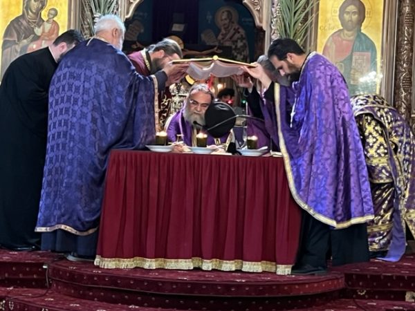 Τον Πανιερώτατο πλαισιώναν οι Ιερείς του Ναού και οι δύο διάκονοί του.