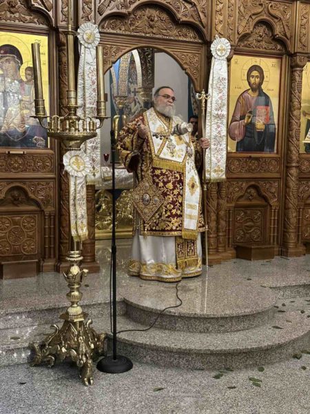 Προ της απολύσεως της Θείας Λειτουργίας ο Πανιερώτατος Μητροπολίτης κ. Ησαΐας απηύθυνε προς το εκκλησίασμα εγκάρδιο Αναστάσιμο χαιρετισμό, ευχόμενος Χρόνια Πολλά και Αναστάσιμα.