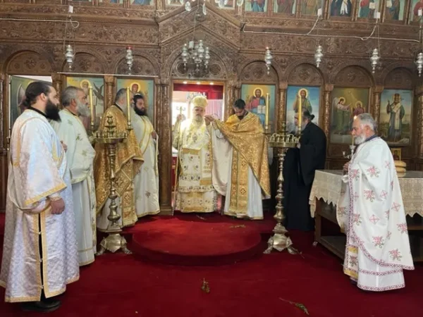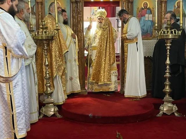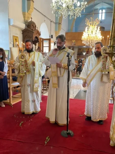 Τον Πανιερώτατο πλαισίωναν ο Πρωτοπρεσβύτερος Μιχαήλ Ευθυμίου, οι Οικονόμοι Πέτρος Φωτίου, εφημέριος του Ναού, και Κωνσταντίνος Χατζηνικολάου, ο Αρχιδιάκονος Ραφαήλ Μισιαούλης και ο Ιεροδιάκονος Αρσένιος Αθανασίου.