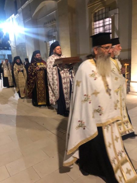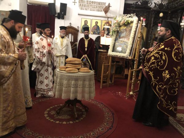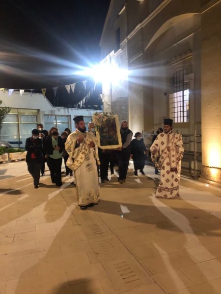 Μετά το πέρας του Εσπερινού, ακολούθησε η λιτάνευση της Ιεράς Εικόνος και των ιερών λειψάνων πέριξ του Ιερού Ναού.