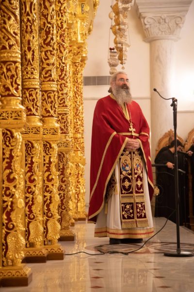 Κατά τη Θεία Λειτουργία, κήρυξε τον θείο λόγο, αναφερόμενος τόσο στη μεγάλη εορτή τής Ενανθρωπήσεως τού Θεού Λόγου, όσο και στην προσωπικότητα τού μακαριστού προκατόχου του ως εξής: