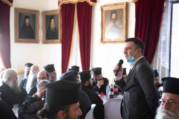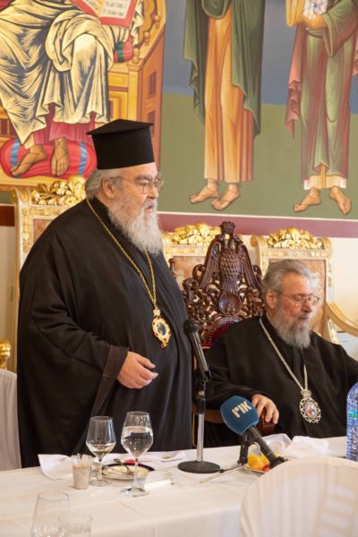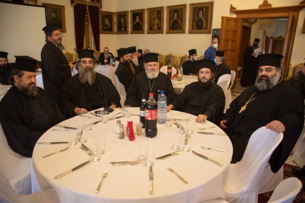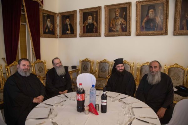 Στη συνέχεια, ο Μακαριώτατος παρέθεσε γεύμα σε όλους τους παρευρισκομένους. Ο Μητροπολίτης Δωδώνης, δραττόμενος της ευκαιρίας, ευχήθηκε στον Μακαριώτατο τα δέοντα και τόνισε την αγάπη που τρέφει προς το πρόσωπο του εξαιτίας της επί πολλών ετών φιλικής σχέσης που τους συνδέει.