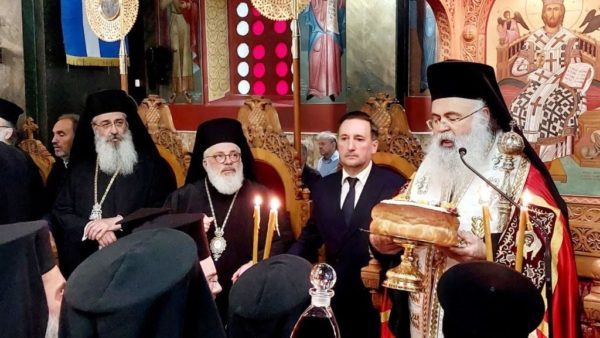 Ο Αρχιεπίσκοπος Κύπρου κ.κ. Γεώργιος χοροστάτησε χθες στον Μεγάλο Πανηγυρικό Εσπερινό στον Μητροπολιτικό Ναό Αγίου Νικολάου Αλεξανδρουπόλεως με αφορμή τον εροτασμό για τα Ελευθέρια της Αλεξανδρούπολης. Στην αντιφώνησή του αναφέρθηκε στην προσπάθεια κατάληψης και τουρκοποίησης ολόκληρης της Κύπρου από τηνΤουρκία.