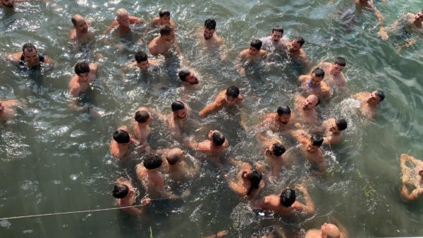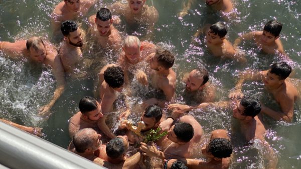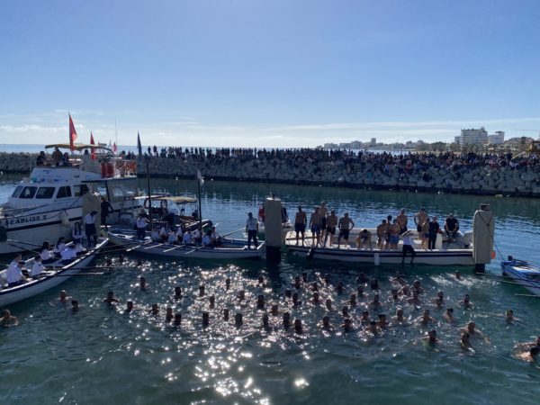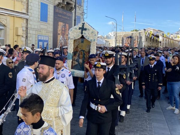 Μετά το πέρας του Μεγάλου Αγιασμού σχηματίστηκε η καθιερωμένη πομπή πρός τη μεγάλη αποβάθρα της Λάρνακας όπου τελέστηκε η κατάδυση του Τιμίου Σταυρού παρουσία πλήθους επισήμων καί λαού.