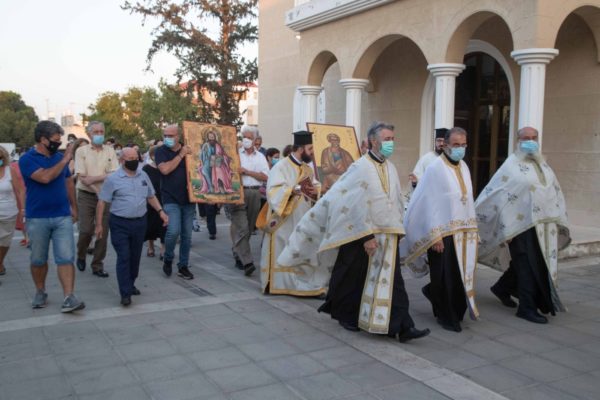 Ο Μακαριώτατος Αρχιεπίσκοπος Κύπρου κ.κ. Χρυσόστομος χοροστάτησε στον εσπερινό, συμπαραστατούμενος από τον Αρχιμ. Τριφύλλιο, τον πρωτοπρεσβύτερο Κυπριανό Κουντούρη και τους εφημερίους τού Ναού πρωτοπ. Πέτρο Ματέι και τον π. Ανδρέα Αγγελή. Ανάμεσα στο εκκλησίασμα ήταν και ο Δήμαρχος Αγίου Δομετίου κ. Κώστας Πέτρου.