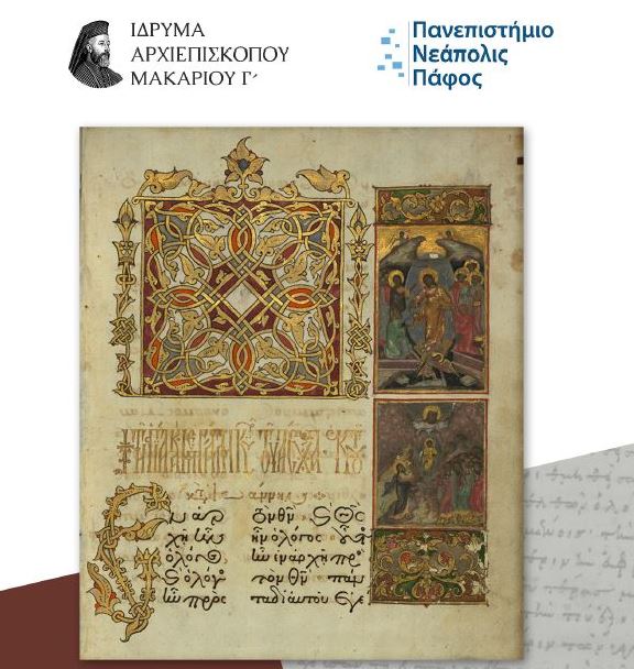 Υπό την αιγίδα του Μακαριωτάτου Αρχιεπισκόπου Κύπρου κ. Χρυσοστόμου Β΄, το Ίδρυμα Αρχιεπισκόπου Μακαρίου Γ΄, και το Πανεπιστήμιο “Νεάπολις” Πάφου διοργανώνουν το Σάββατο, 11 Μαΐου 2019 και ώρα 19:00 διάλεξη με θέμα: «Η Ελληνική χειρόγραφη Παράδοση. Παράγοντες και δυναμική στην ιστορική της πορεία» και ομιλητή τον Επίκουρο Καθηγητή του Πανεπιστημίου “Νεάπολις” Πάφου πρωτ. Κωνσταντίνο Ε. Κωστάκη.