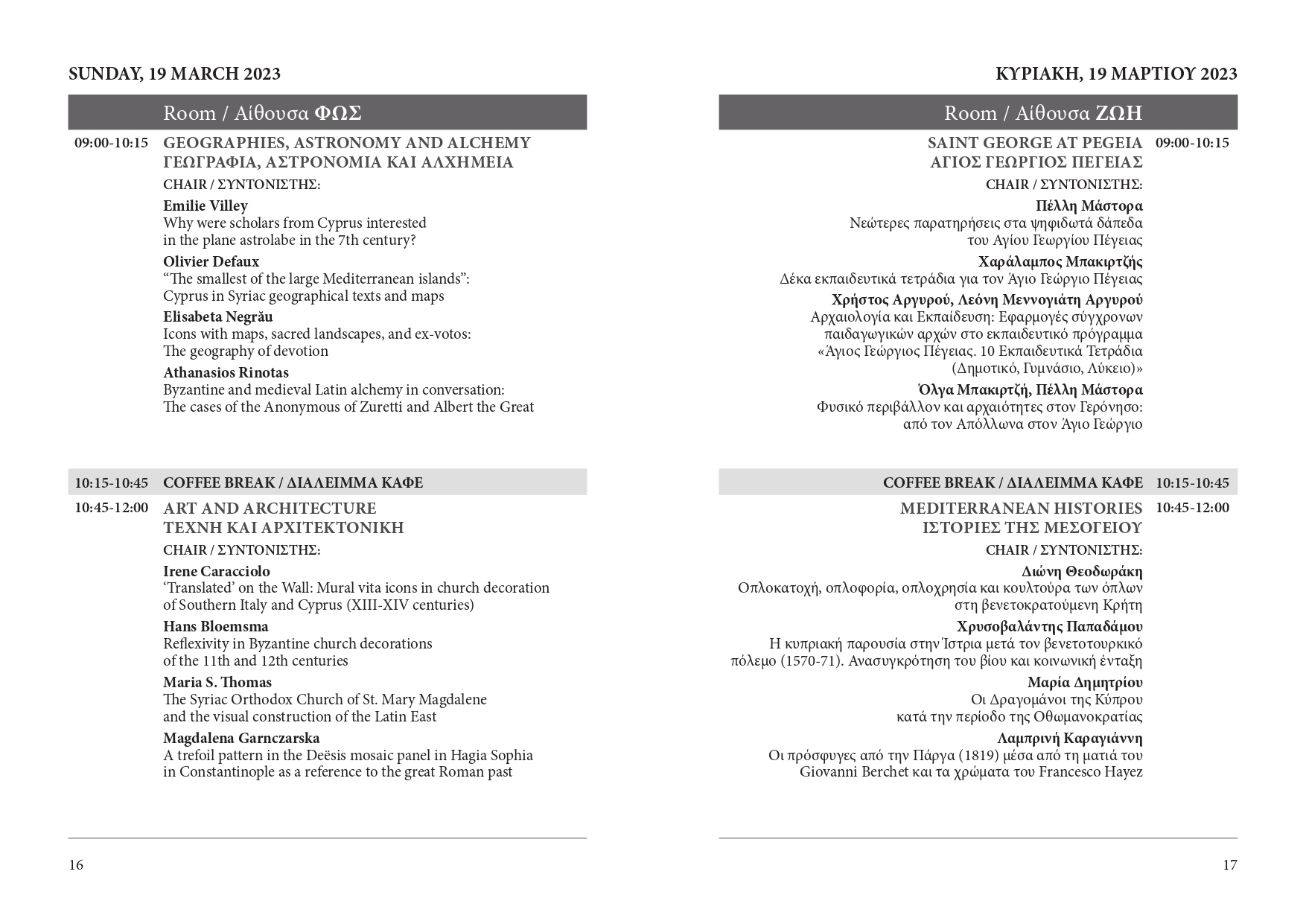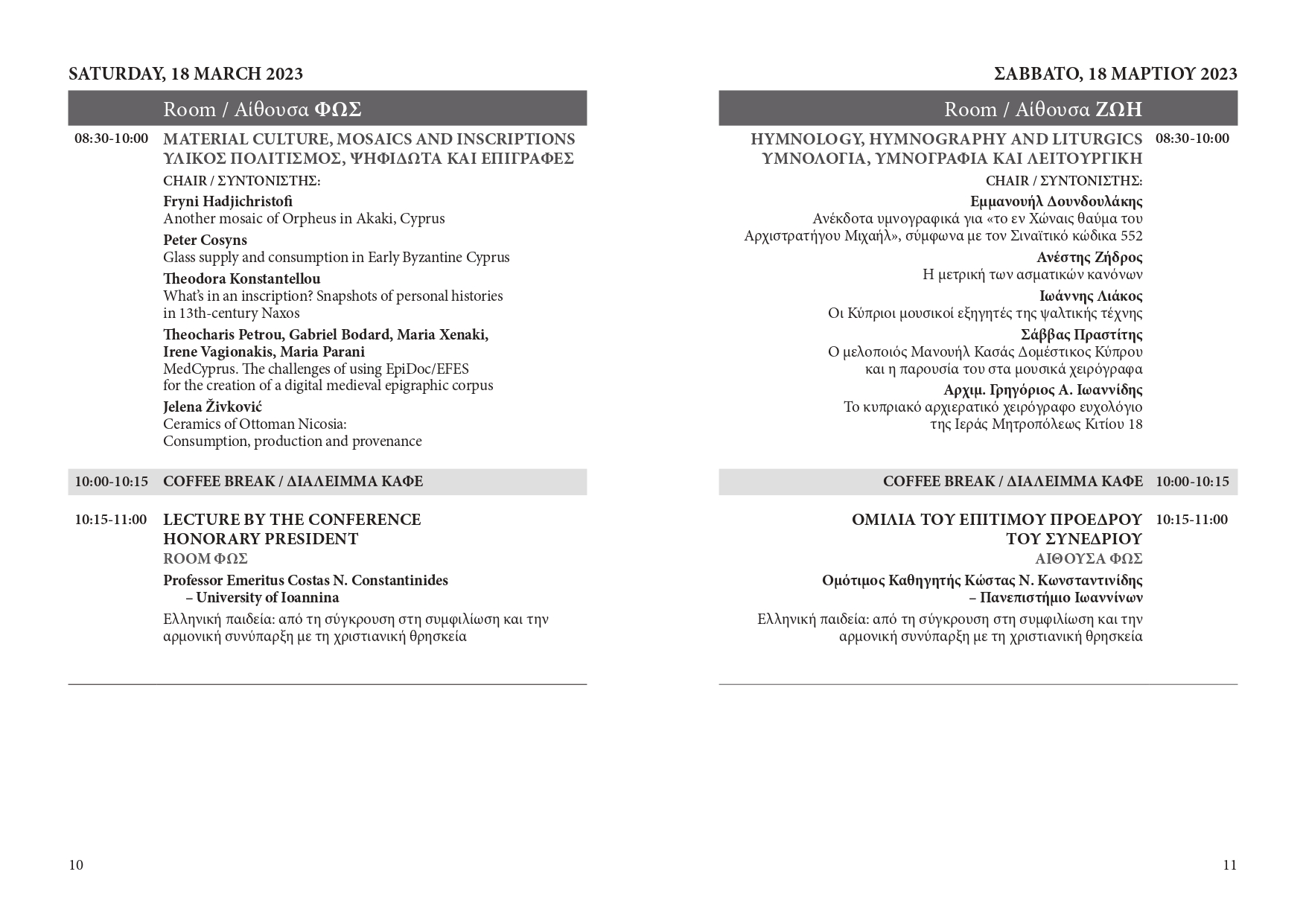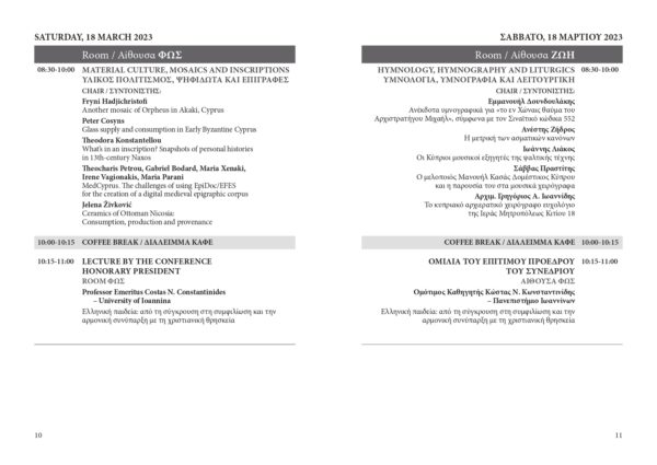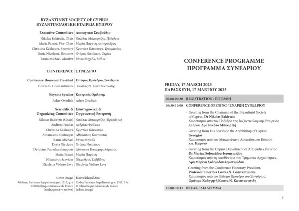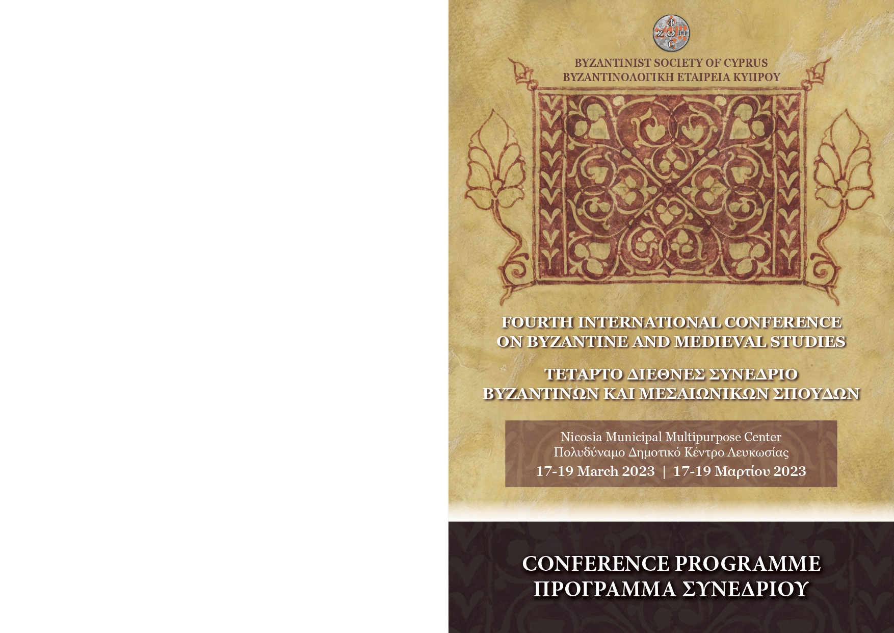 02/03/2023 02/03/2023 Το Δ΄ Διεθνές Συνέδριο Βυζαντινών και Μεσαιωνικών Σπουδών της Βυζαντινολογικής Εταιρείας Κύπρου  θα πραγματοποιηθεί μέσα στο Μάρτιο. Το Συνέδριο θα λάβει χώρα στο Πολυδύναμο Δημοτικό Κέντρο του Δήμου Λευκωσίας, οδός Νικηφόρου Φωκά 40, Λευκωσία, δίπλα στην Πύλη Αμμοχώστου, 17-19 Μαρτίου 2023. Δείτε το πρόγραμμα του Συνεδρίου  ΕΔΩ: