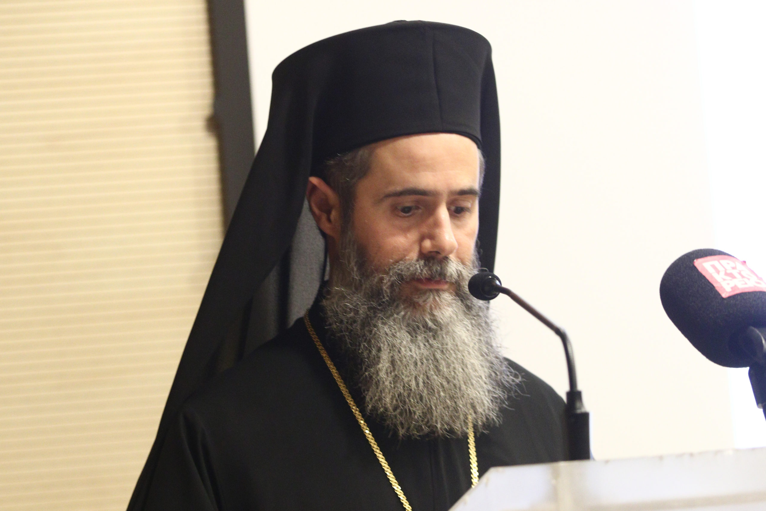 Τον χαιρετισμού του Μακαριωτάτου Αρχιεπισκόπου Αθηνών και πάσης Ελλάδος κ.κ. Ιερωνύμου ανέγνωσε ο Πρωτοσυγκελλος της Ιεράς Αρχιεπισκοπής, Θεοφιλ. Επίσκοπος Χριστουπόλεως κ. Βαρνάβας.