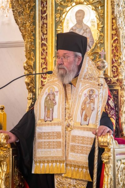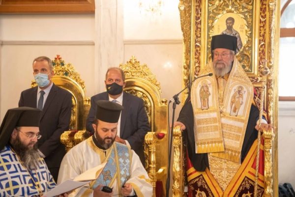 Κατά τη Δοξολογία, ο Μακαριώτατος ανέπεμψε δέηση και ανέγνωσε ευχή, με την οποία «ευχαρίστησε τον Θεό για την προστασία που παρέχει στην μικρή πατρίδα μας κατά τους πολυειδείς αγώνες για την προάσπιση των εθνικών ορίων αλλά και της ανθρώπινης αξιοπρέπειας των κατοίκων της. Ακόμη, παρακάλεσε τον Κύριο, διά πρεσβειών τής Κυρίας Θεοτόκου, να ενισχύει, να φωτίζει και να καθοδηγεί τον φιλόχριστο στρατό μας και όλα τα στελέχη του προς επιτέλεση τού υπέρτατου χρέους τής απελευθέρωσης τού κατεχόμενου τμήματος τής Πατρίδας μας. Τέλος, όπως αναπαύσει τους υπέρ πίστεως και πατρίδος αγωνισαμένους, ευκλεώς πεσόντας ή υπό των πολεμίων αναιρεθέντας».