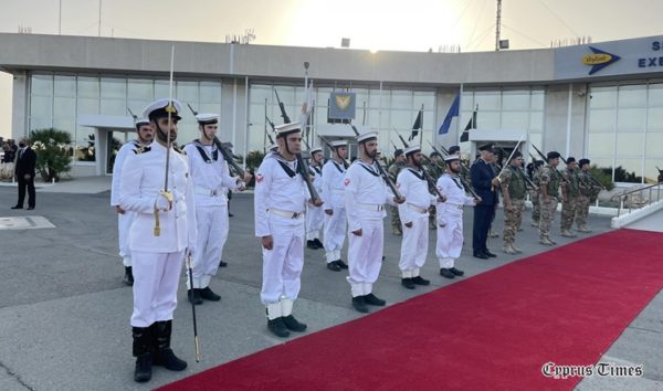 Από το αεροσκάφος μέχρι την αίθουσα των Επισήμων του παλαιού αεροδρομίου στρώθηκε κόκκινο χαλί, παιάνιζε στρατιωτική μουσική της Εθνικής Φρουράς, ενώ διακλαδικό άγημα αποτελούμενο από διμοιρία στρατού ξηράς, ναυτικού και αεροπορίας απέδωσε τιμές.