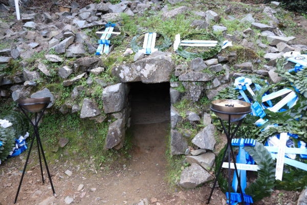 Μετά το μνημόσυνο ακολούθησε τρισάγιο στο κρησφύγετο του ήρωα και αναπαράσταση της μάχης που ο Γρηγόρης Αυξεντίου και οι συναγωνιστές του έδωσαν εναντίον των Βρετανών αποικιοκρατών 67 χρόνια πριν, σύμφωνα με την αφήγηση ενός εξ αυτών, του Αυγουστή Ευσταθίου, του «Ματρόζου» της ΕΟΚΑ.